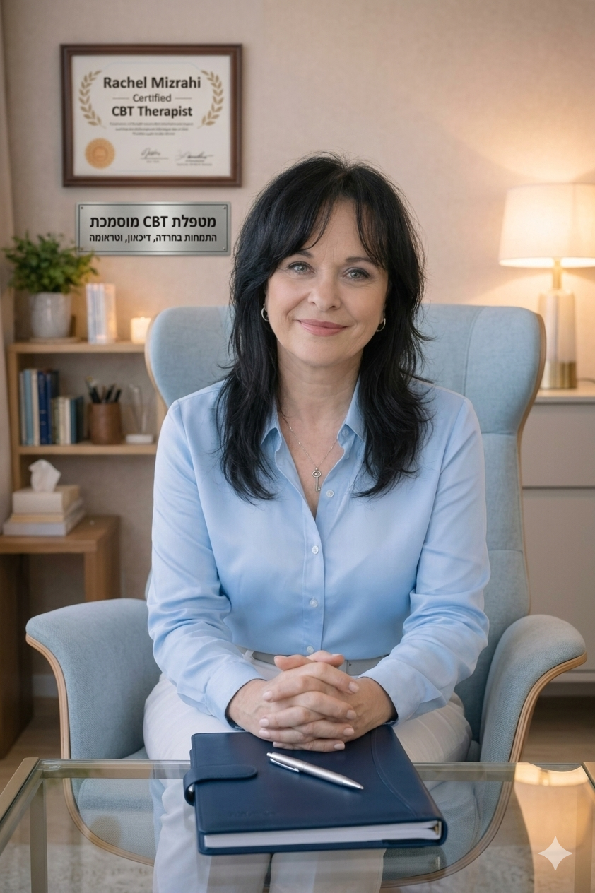 שמי רחל מזרחי, ואני מטפלת Li-CBT מוסמכת עם ניסיון רחב בליווי מטופלים המתמודדים עם חרדה, דיכאון, טראומה ומצבי לחץ.
